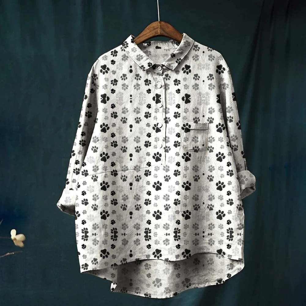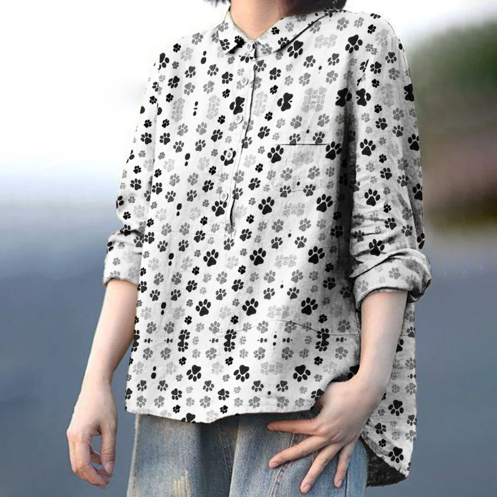 Women's Lapel Shirt, Cute Cartoon Kitten Puppy Paw Print, Long Sleeve Trend, Designer Clothes, New Traf Blouse
