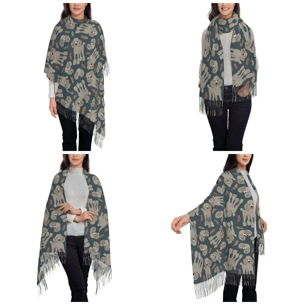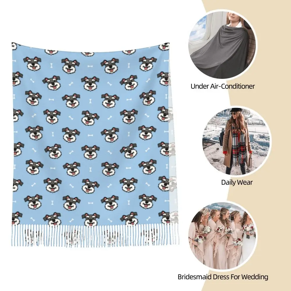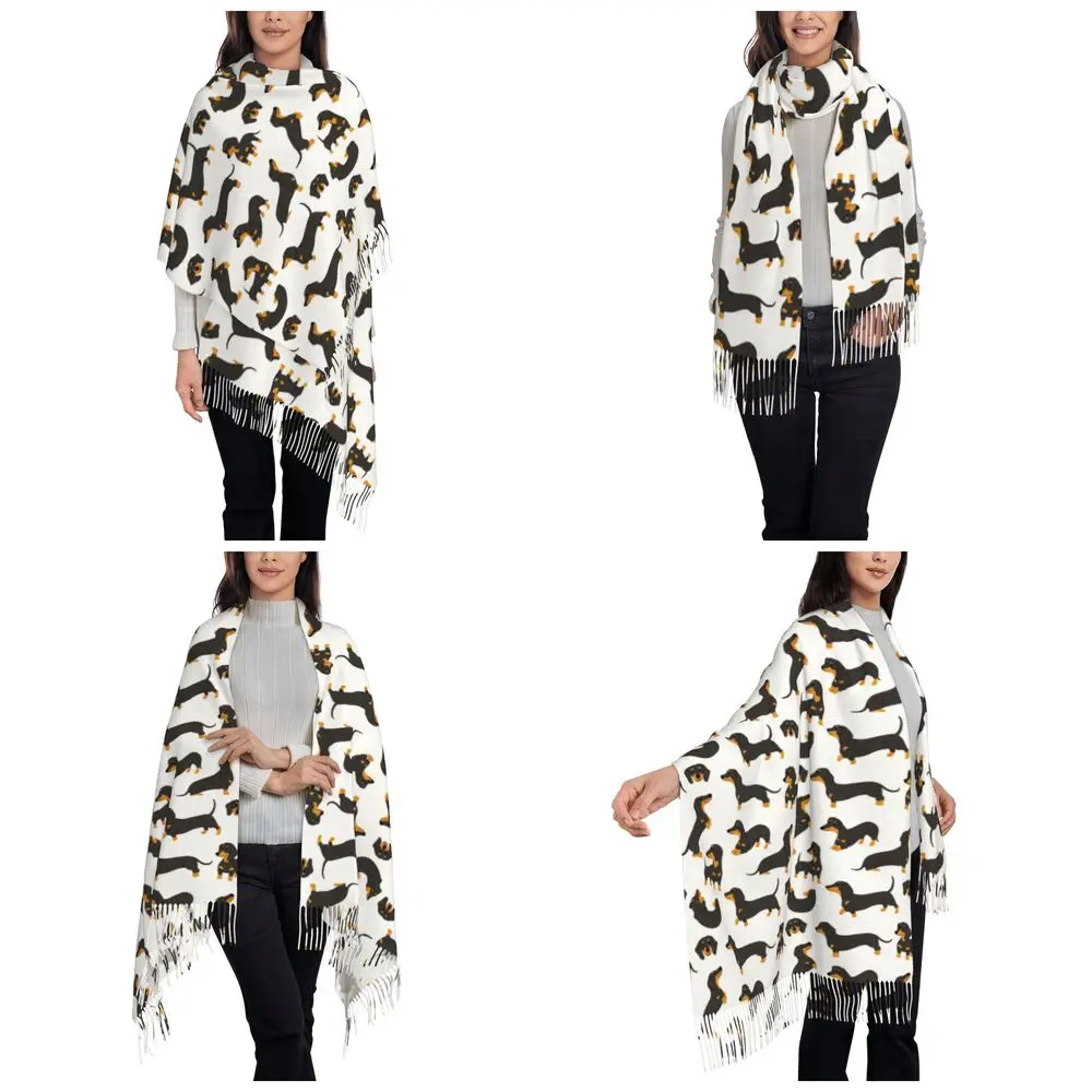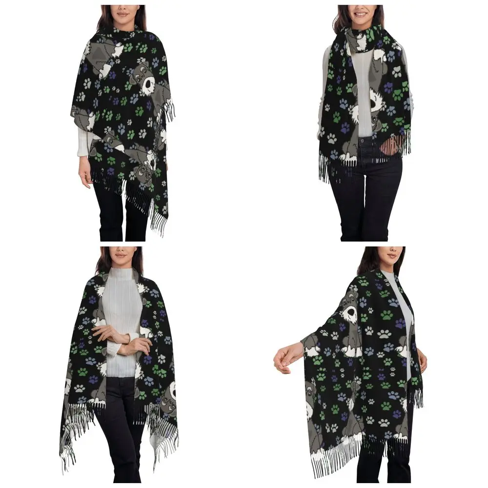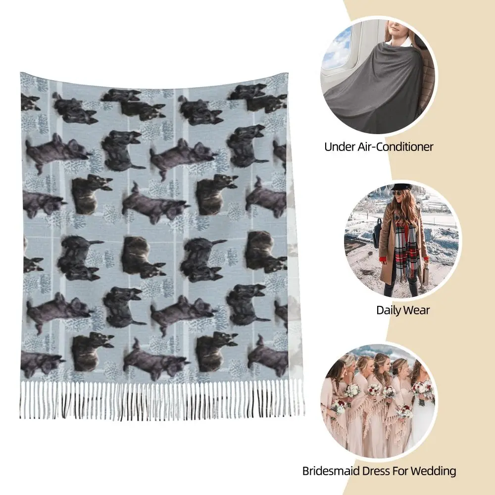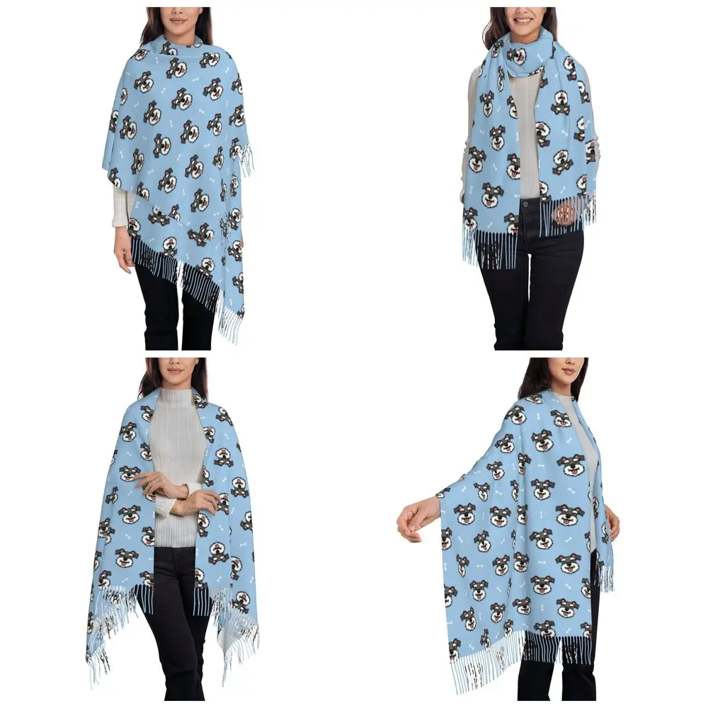 Women's Scarf with Tassel Cartoon Happy Large Super Soft Shawl Wrap Dog Lover Gifts Cashmere Scarf