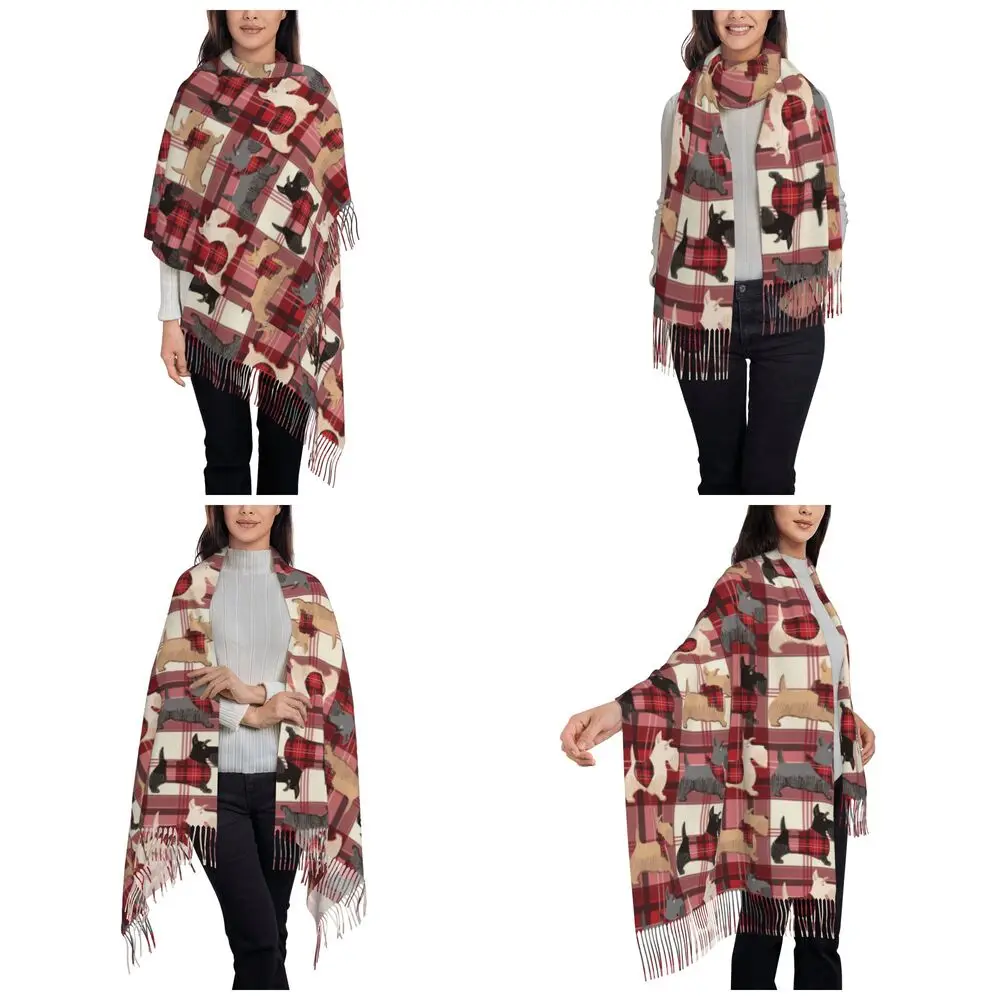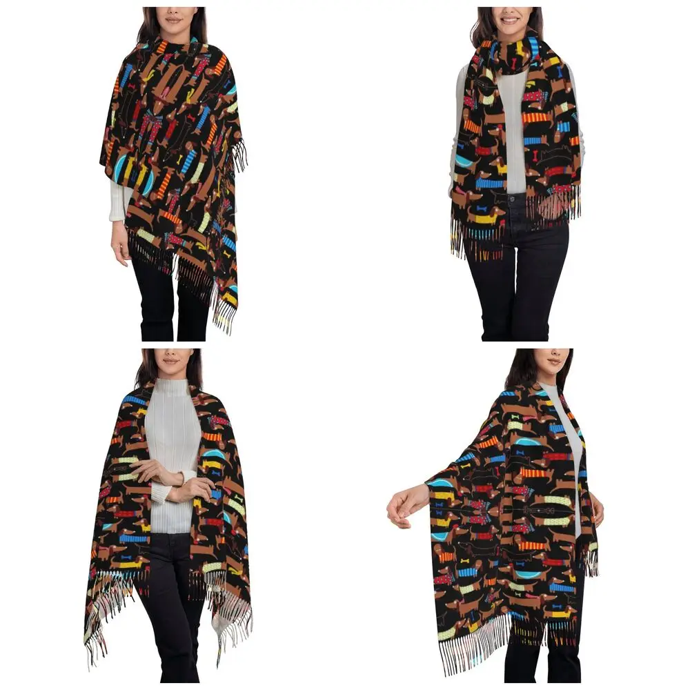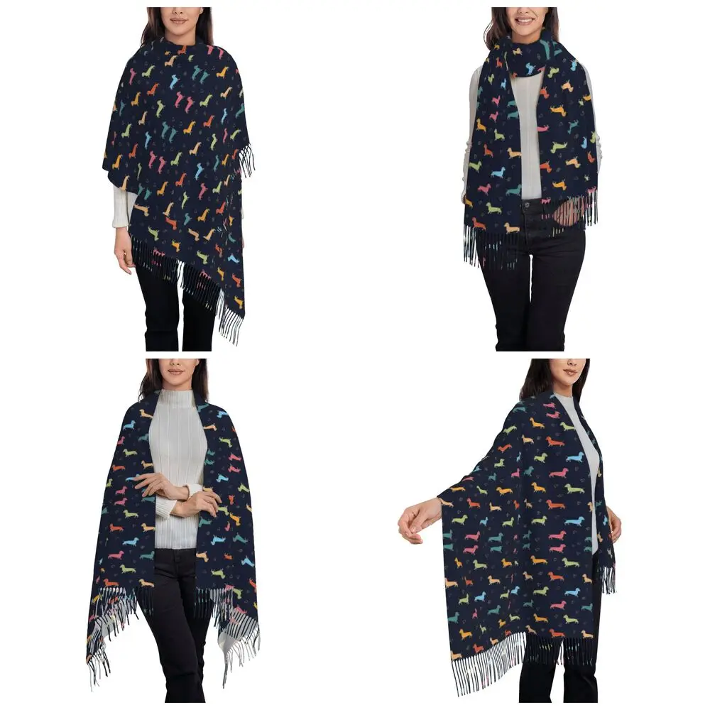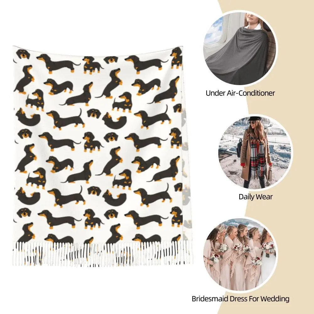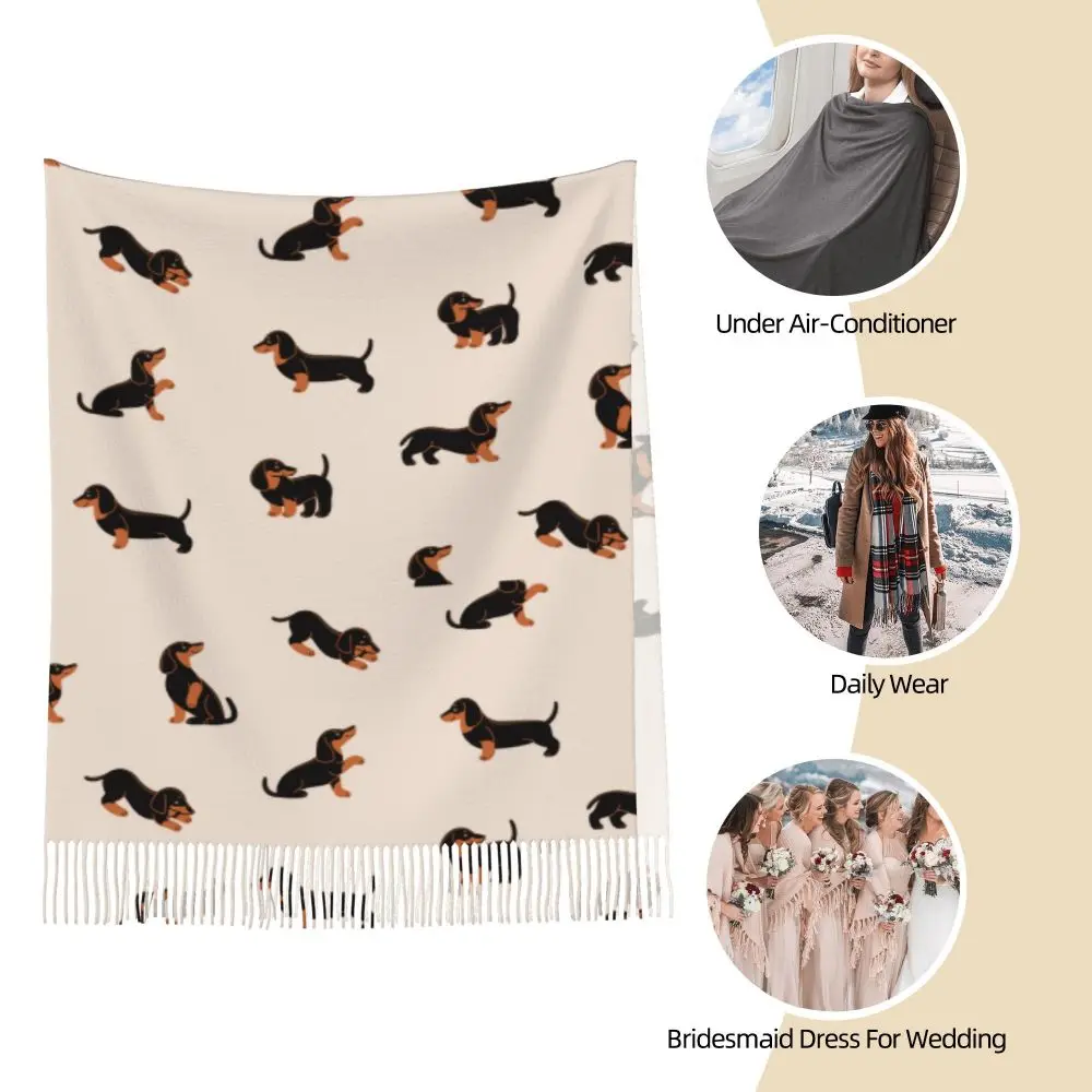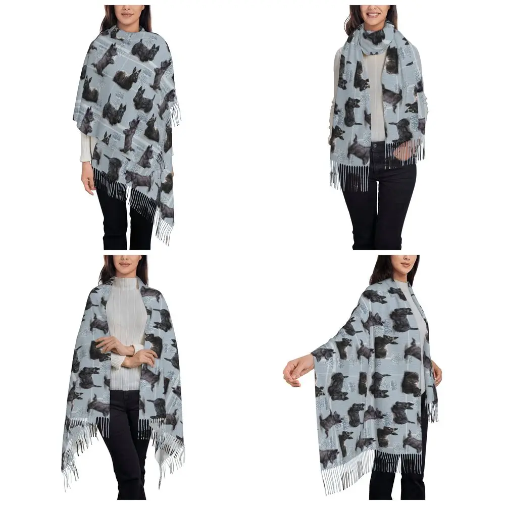 Women's Scarf with Tassel Cartoon Happy Large Super Soft Shawl Wrap Dog Lover Gifts Cashmere Scarf