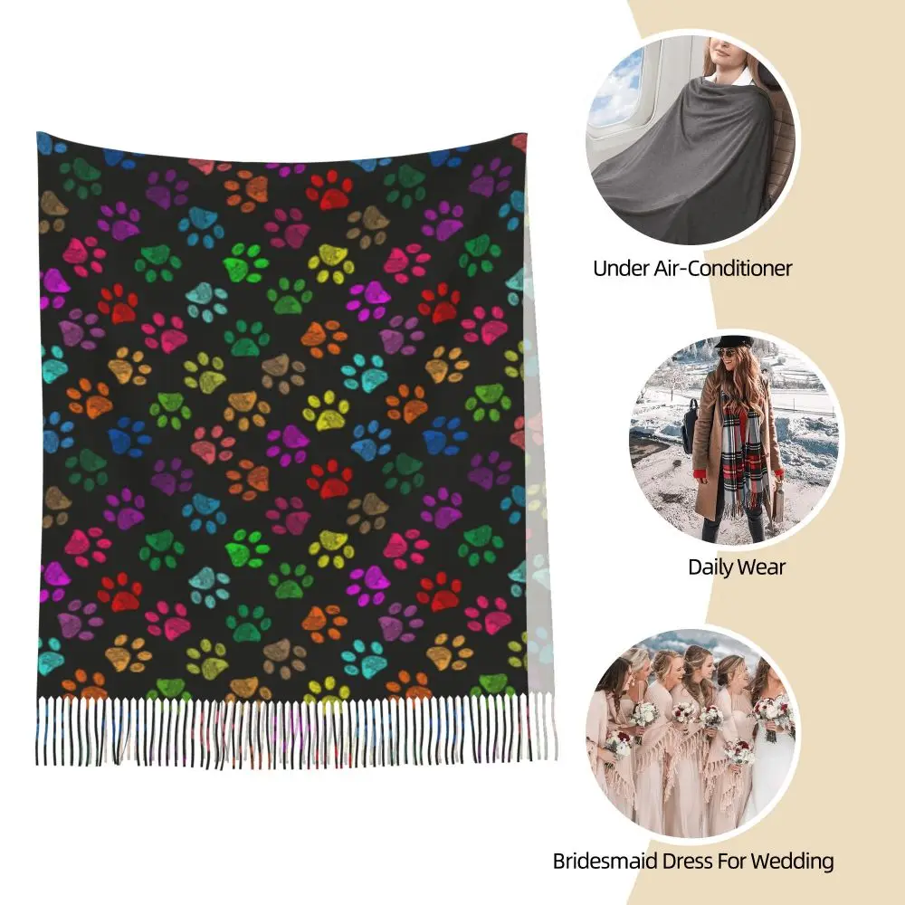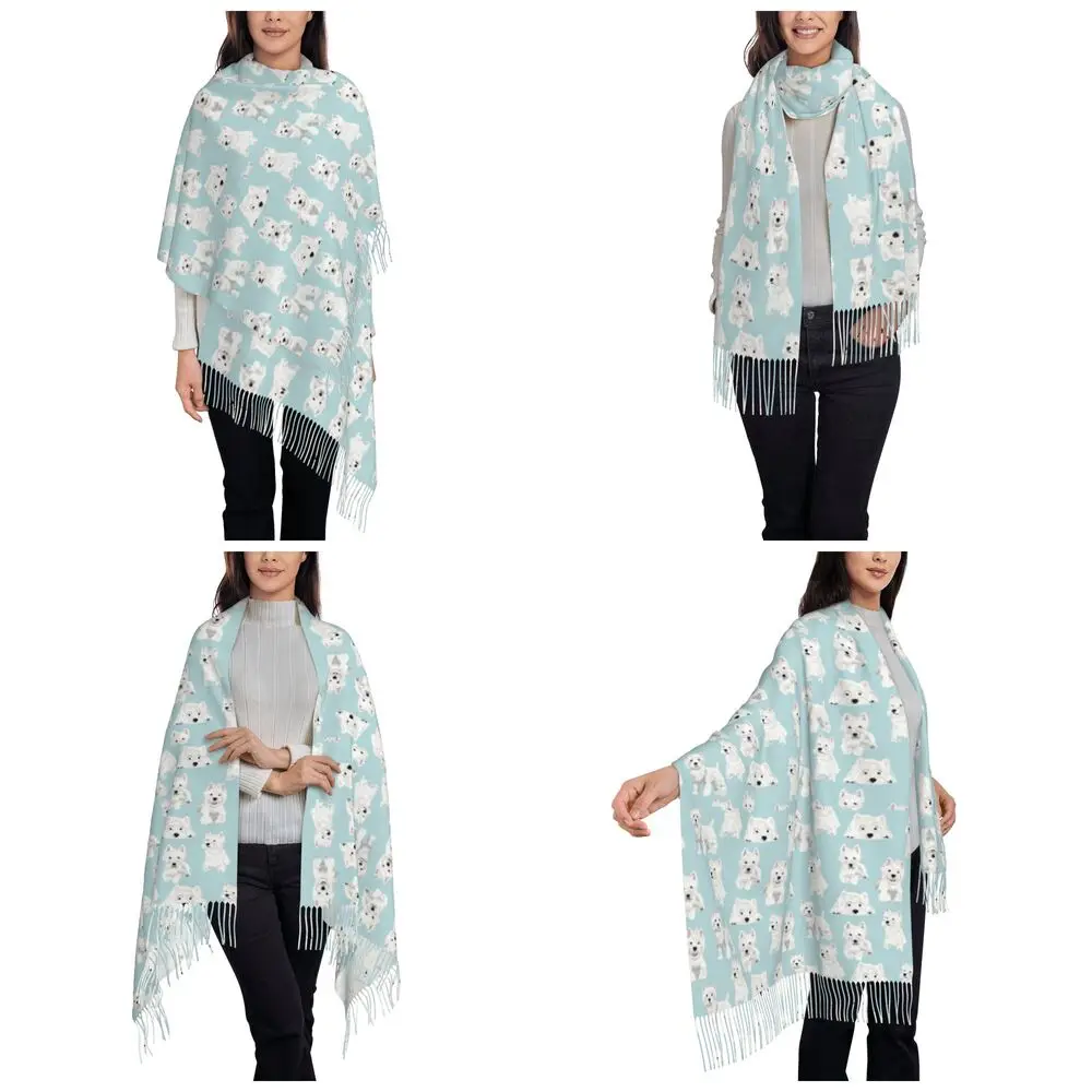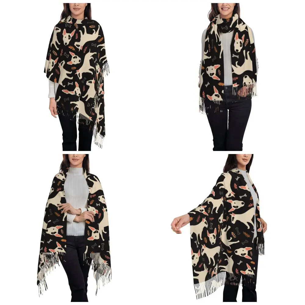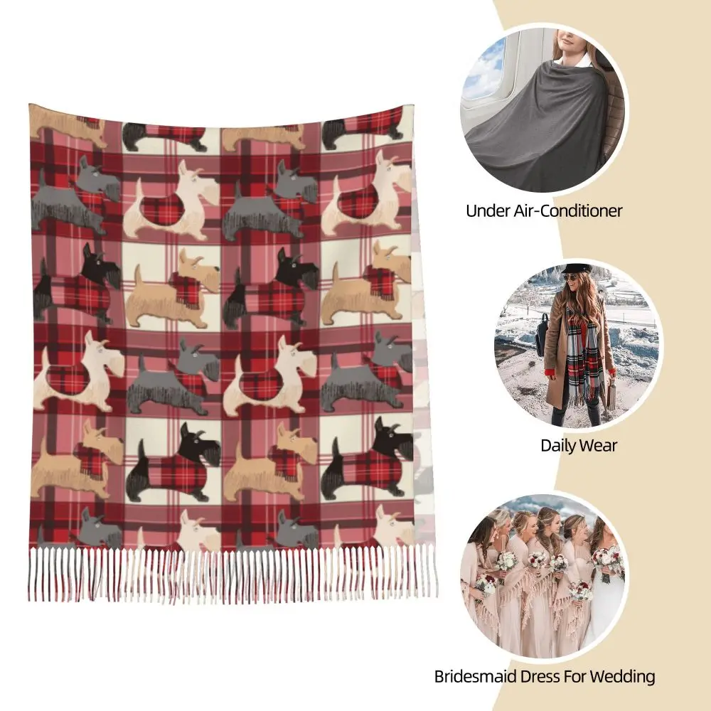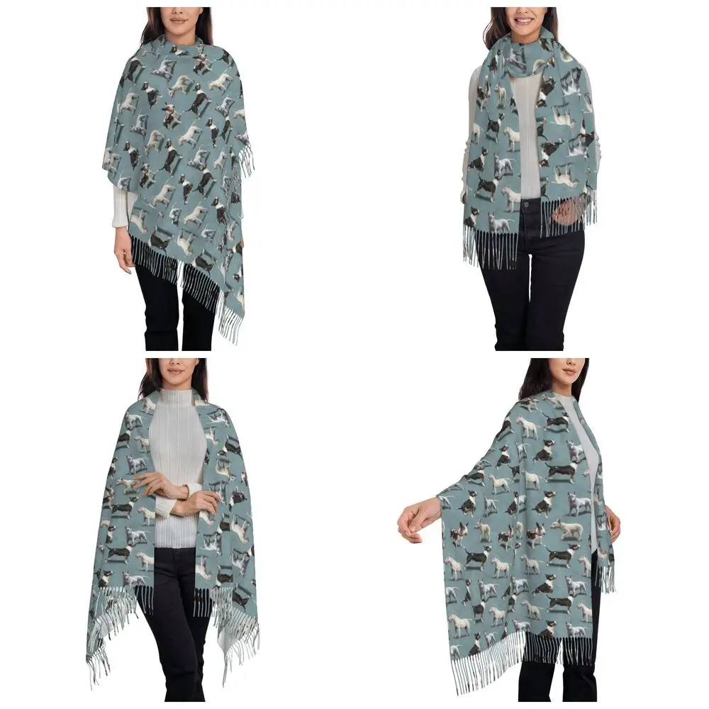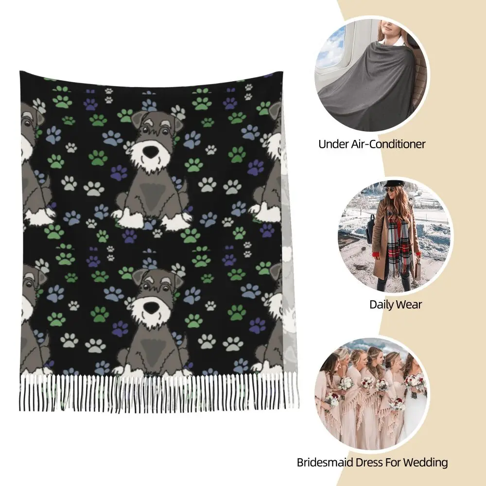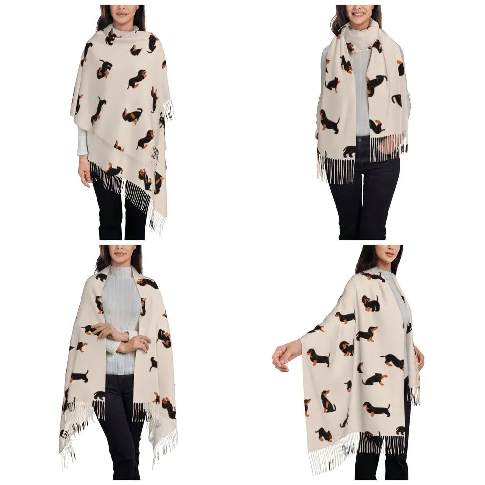 Women's Scarf with Tassel Cartoon Happy Large Super Soft Shawl Wrap Dog Lover Gifts Cashmere Scarf