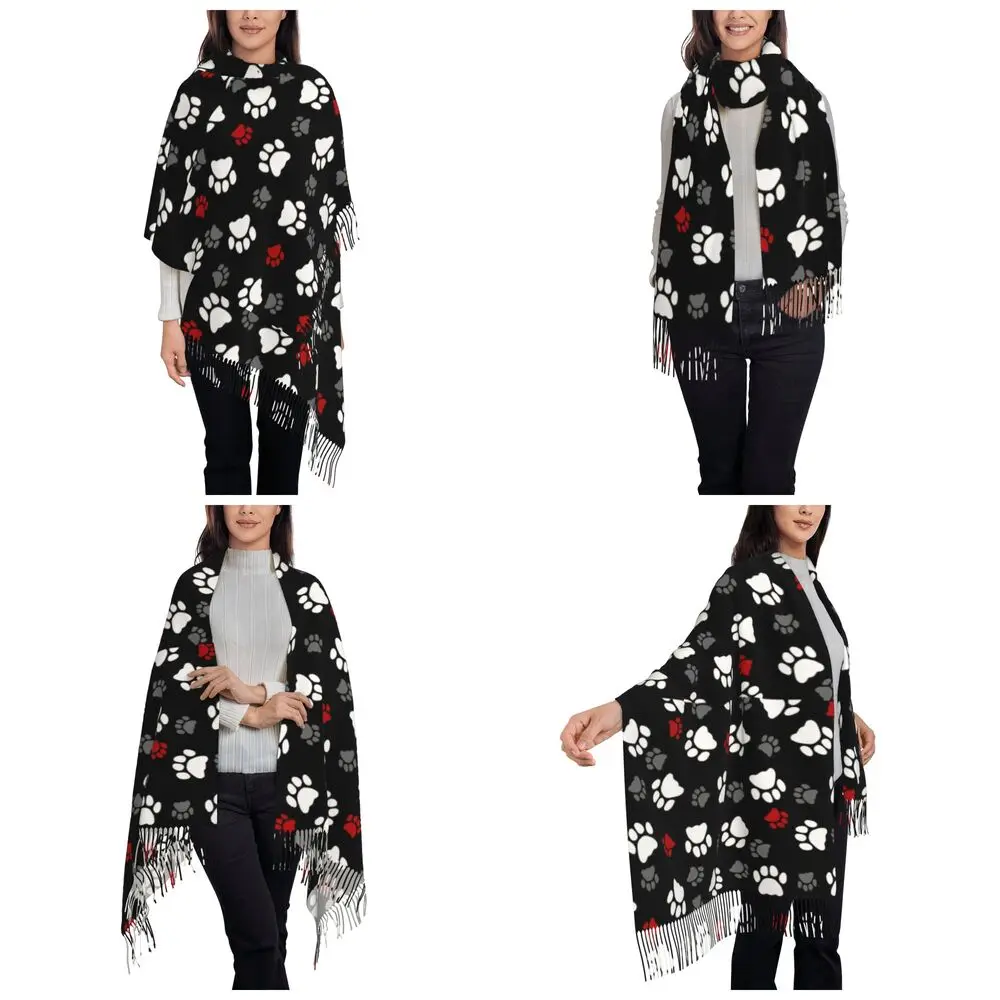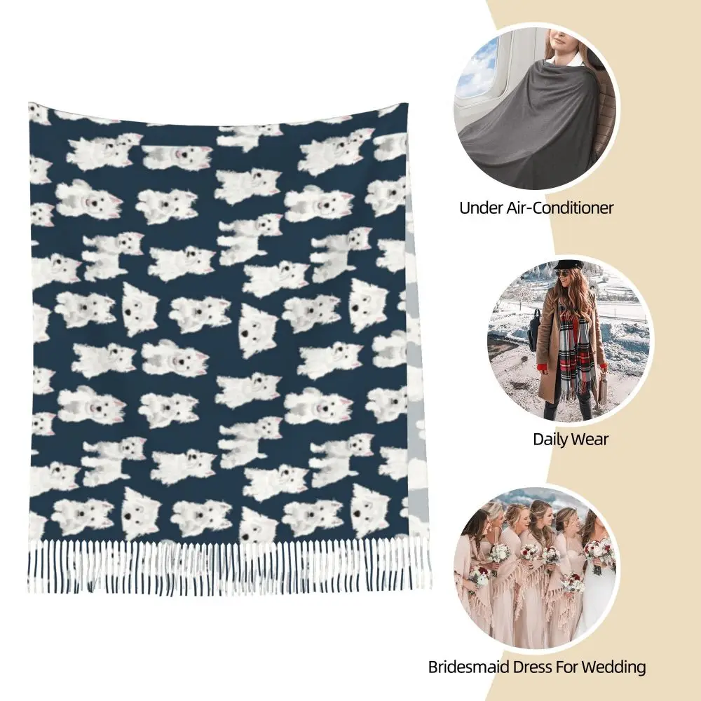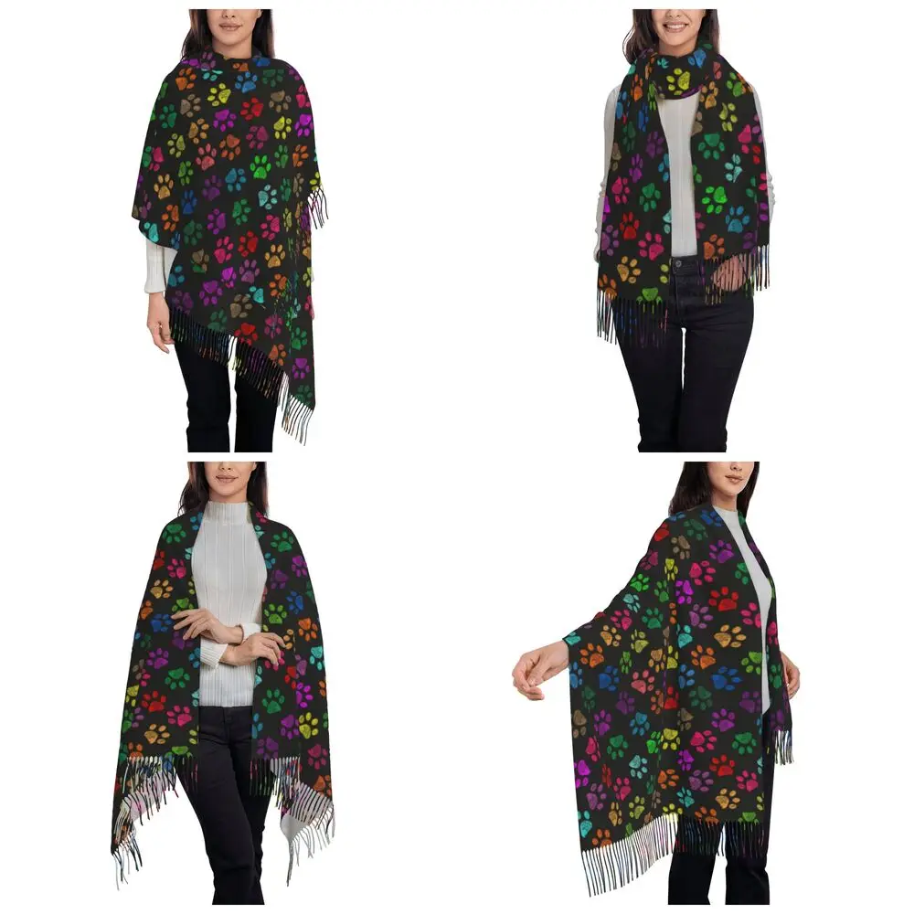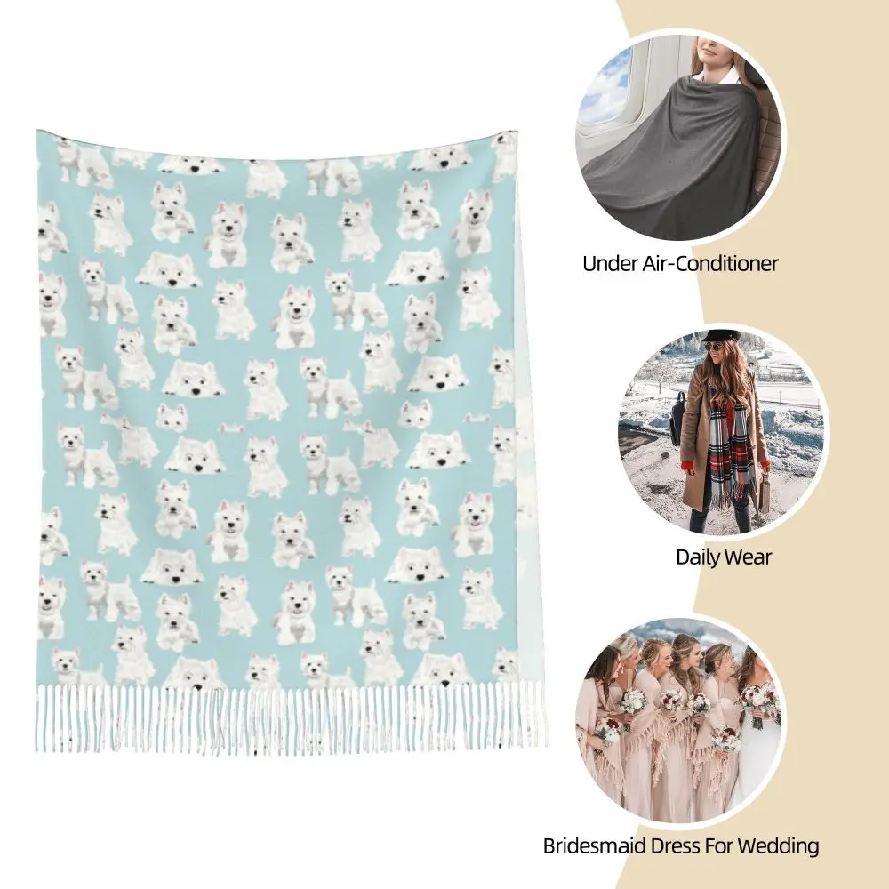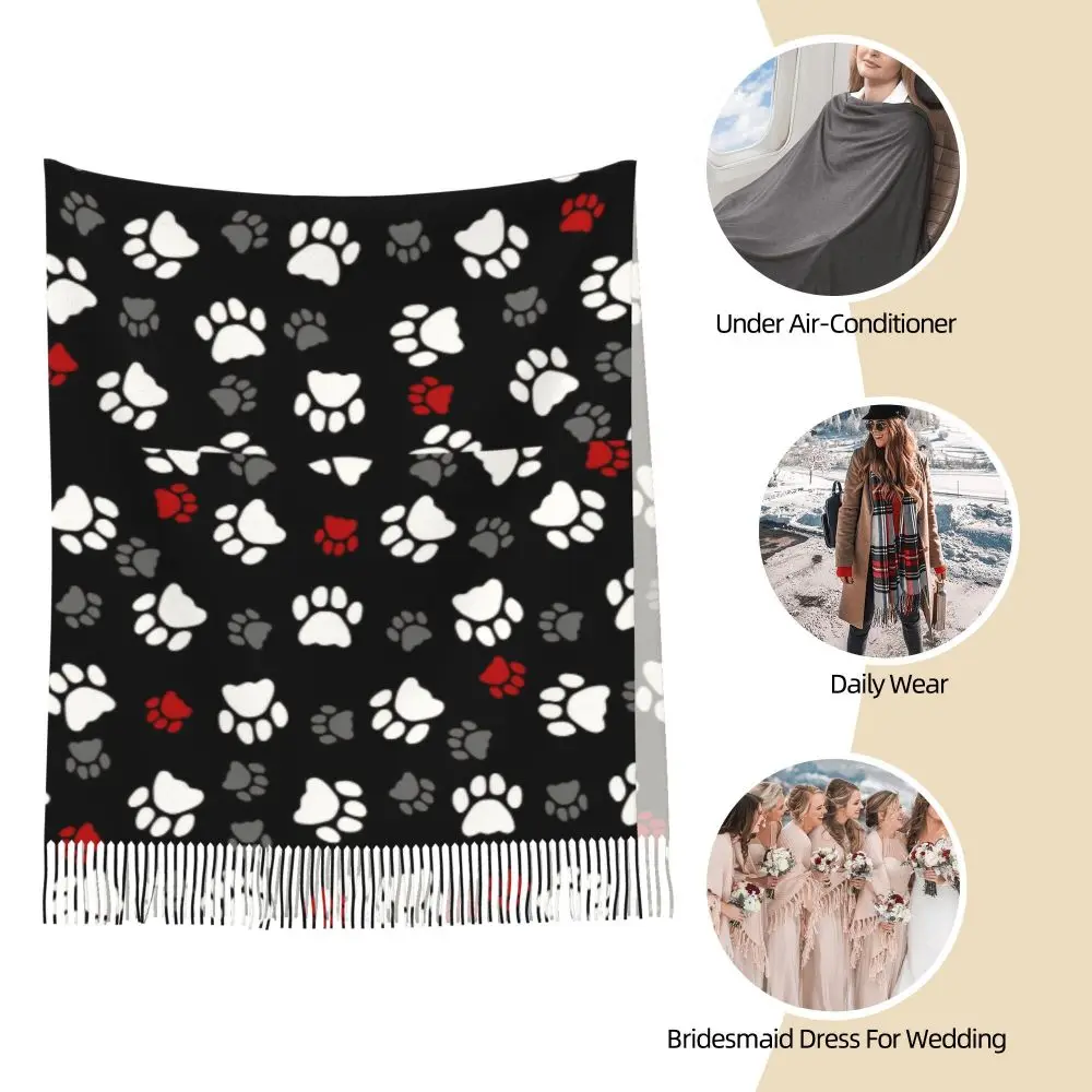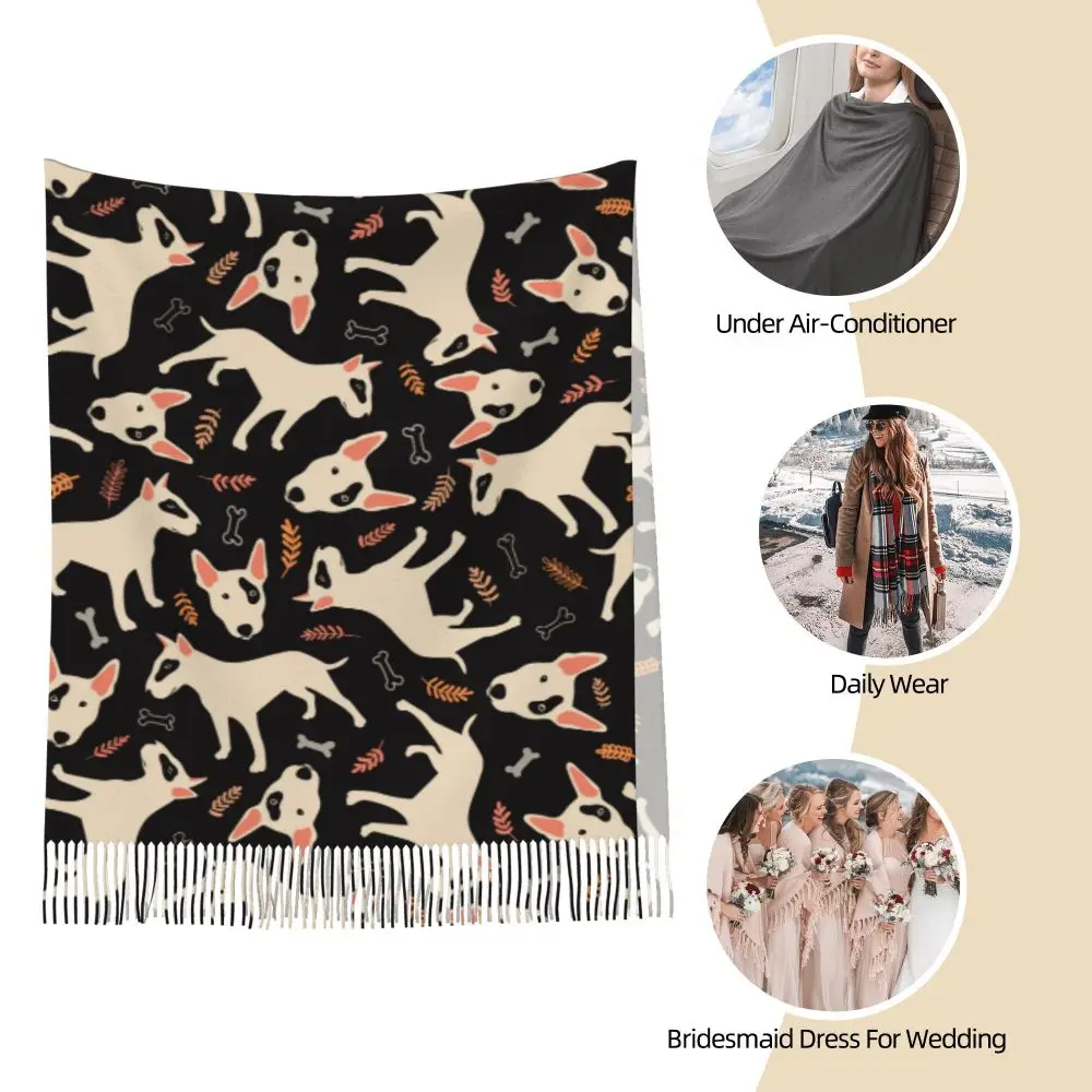 Women's Scarf with Tassel Cartoon Happy Large Super Soft Shawl Wrap Dog Lover Gifts Cashmere Scarf