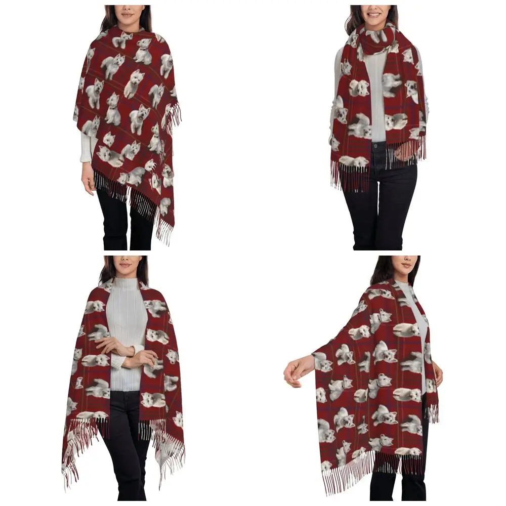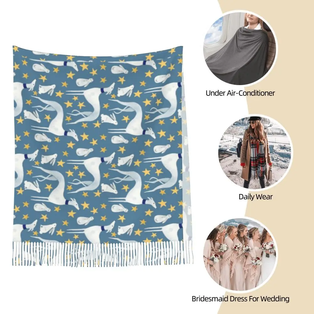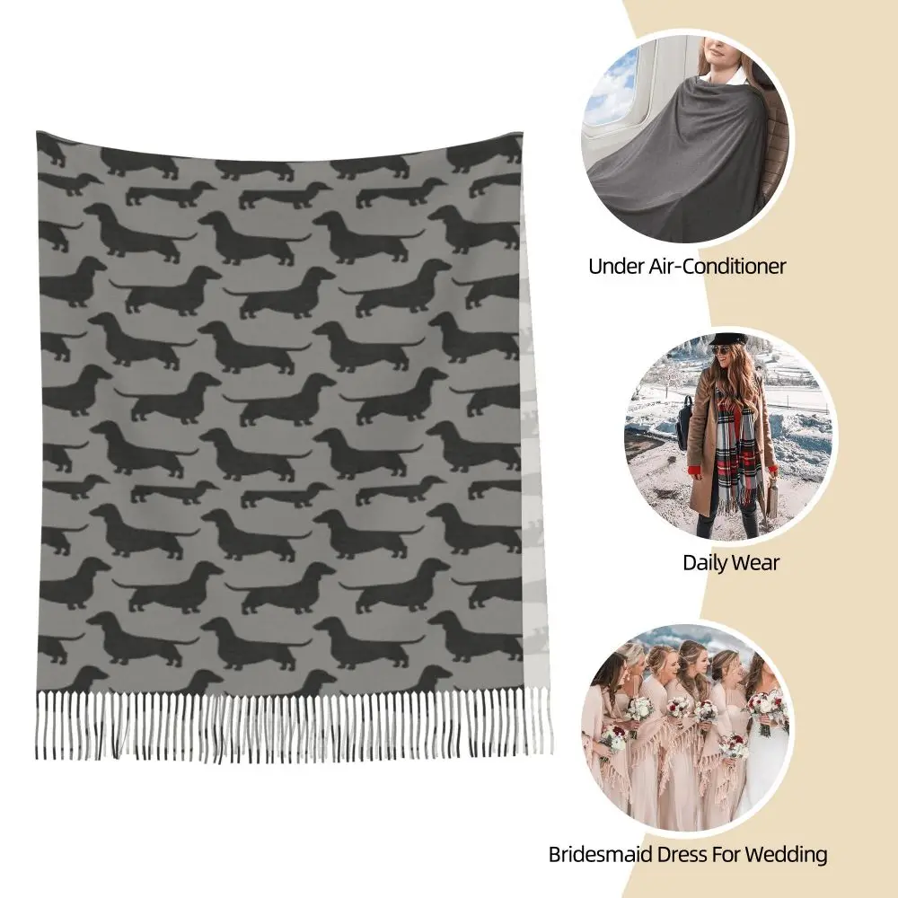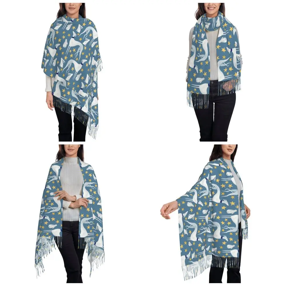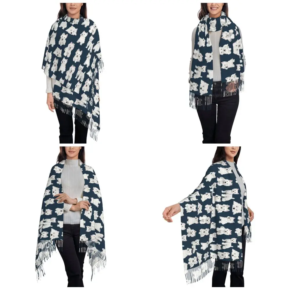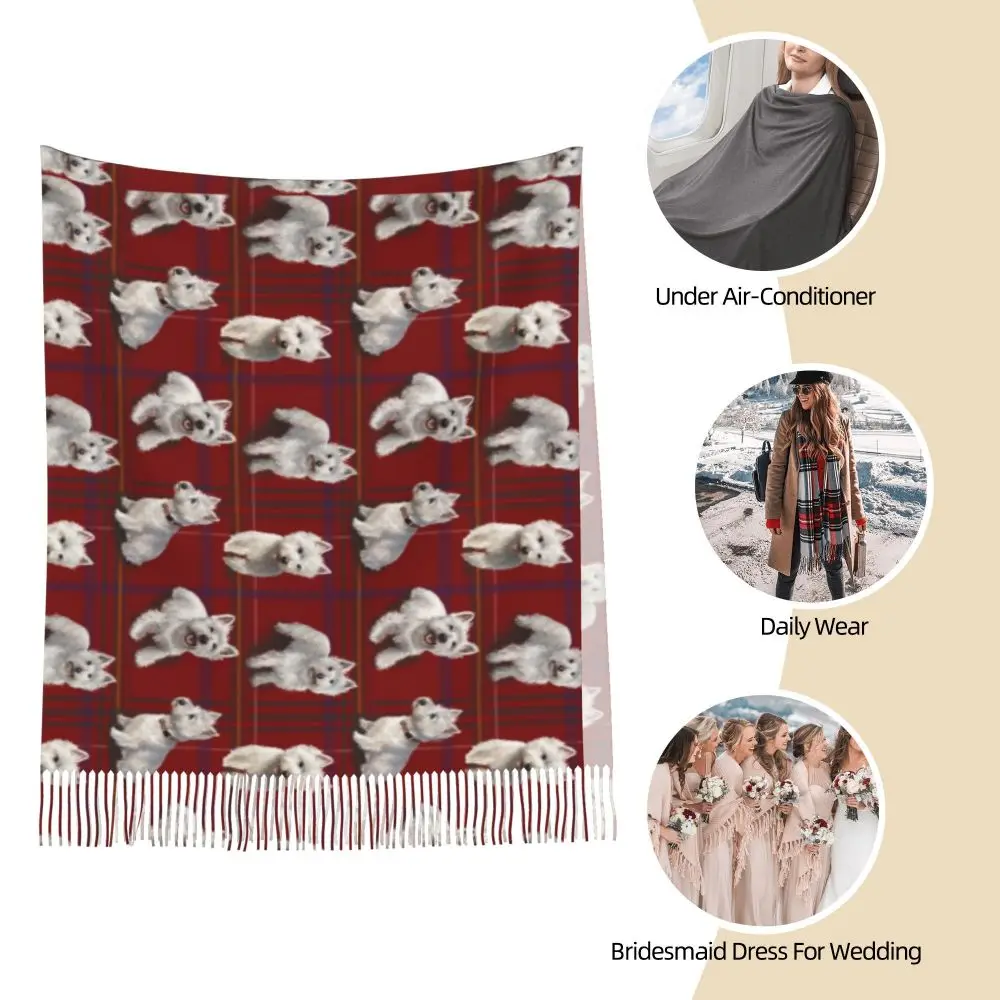 Women's Scarf with Tassel Cartoon Happy Large Super Soft Shawl Wrap Dog Lover Gifts Cashmere Scarf