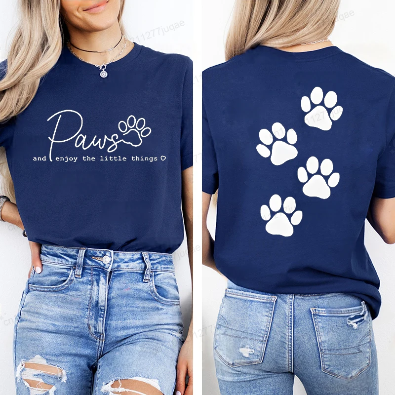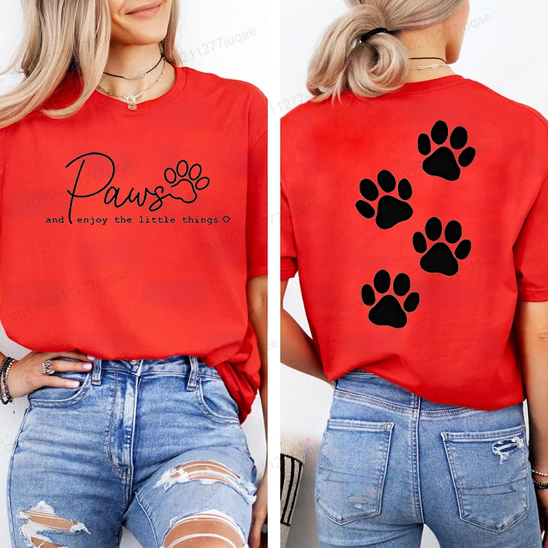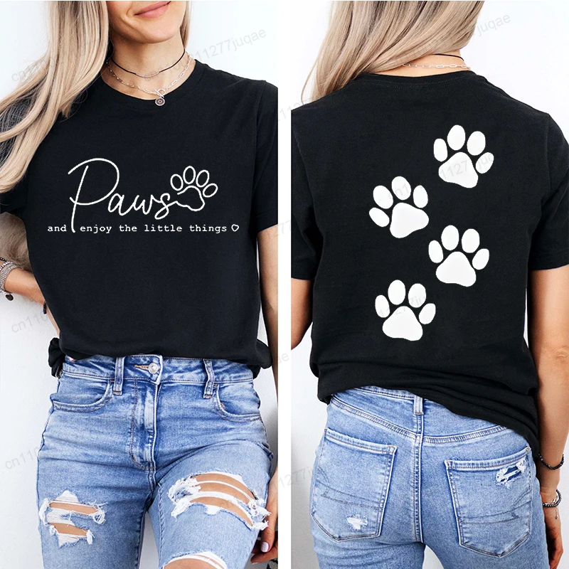Women's Summer T-Shirt Paws and Enjoy The Little Things Shirt Fashion Printed T-Shirt Brand Women's Clothing Short Sleeve Tops