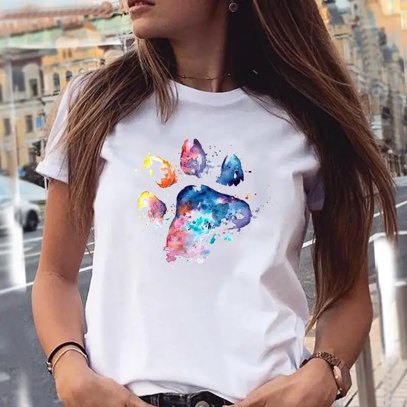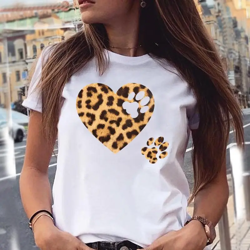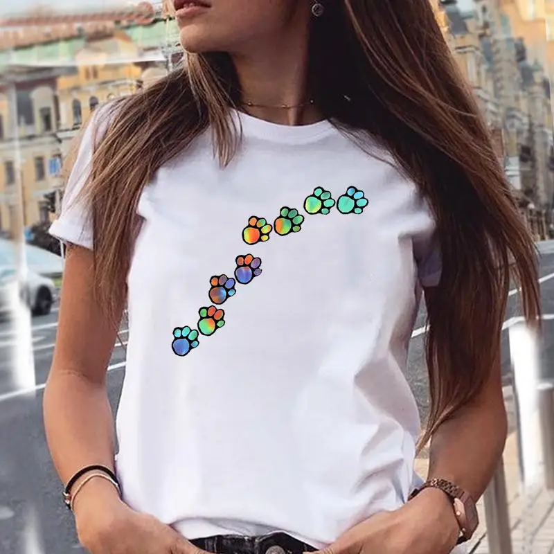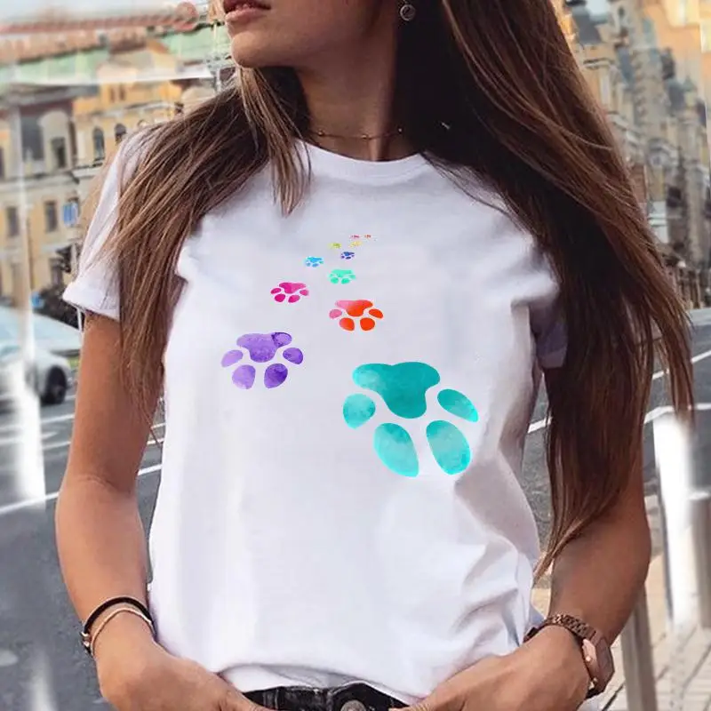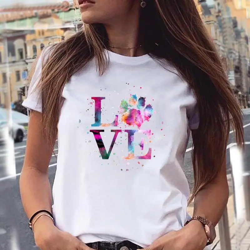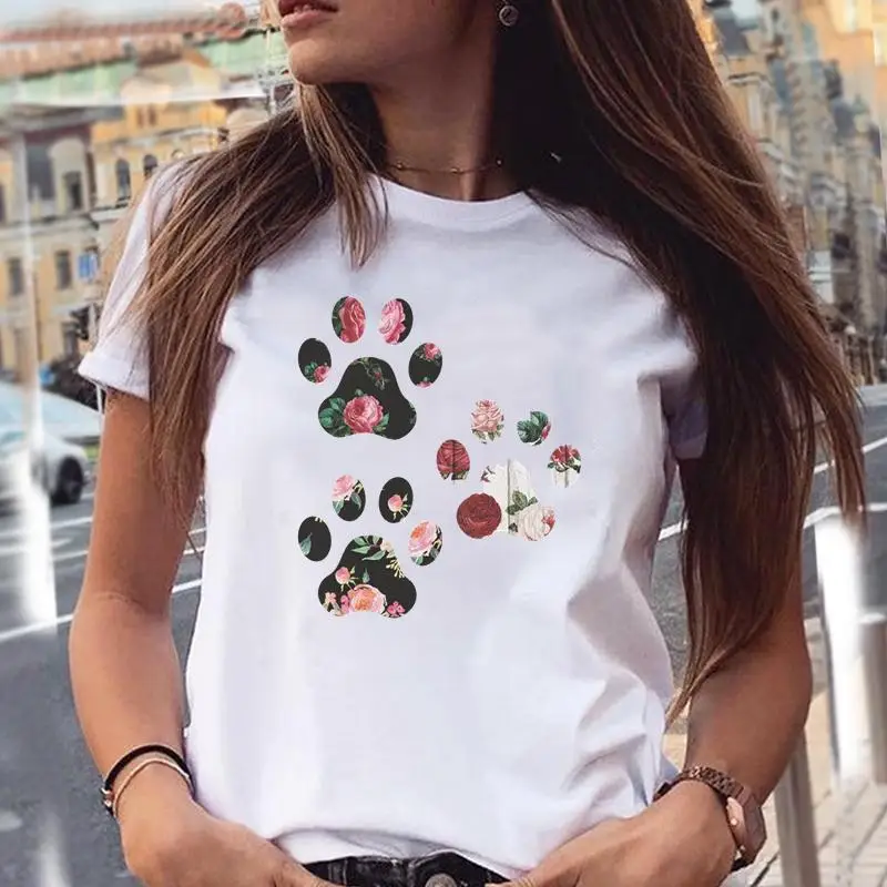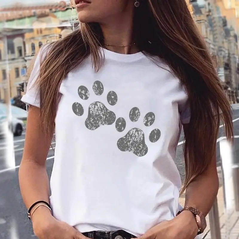 Women T-shirts Love Trend Style Dog Paw Cartoon Animal Pet T-Shirt