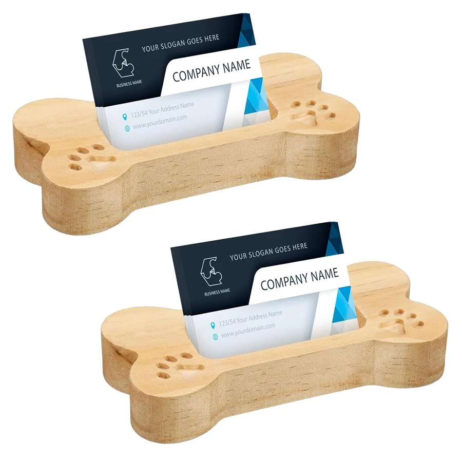 Wooden Dog Bone Shaped Business Card Holder, Pet Business Card Stand, Wooden Paw Print Cute Card Display Stand Organizer